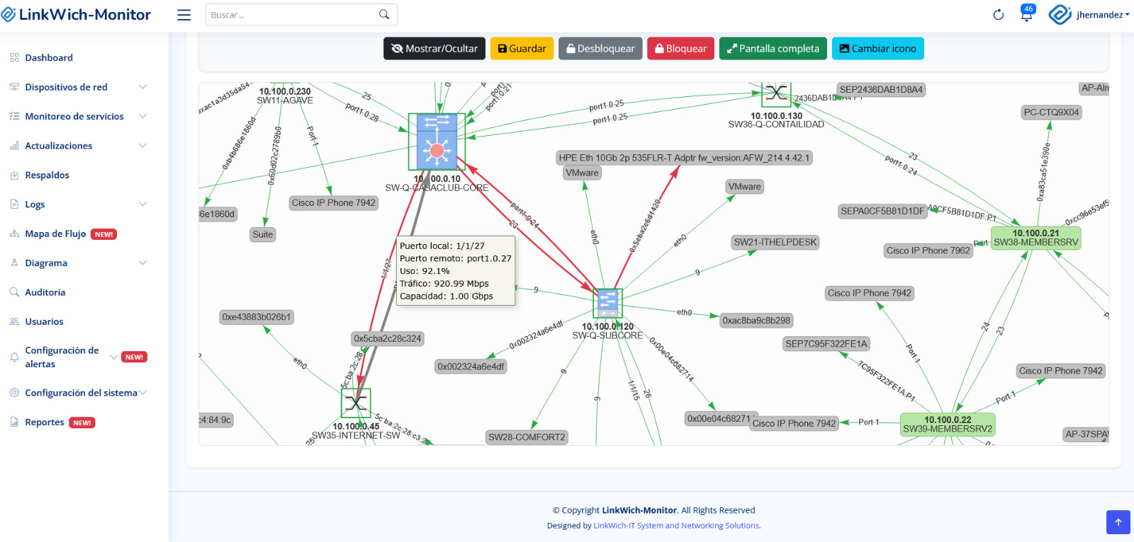 Descubre cómo se conectan tus equipos con nuestro mapa dinámico basado en LLDP. Ideal para identificar problemas de conexión o crecimiento desordenado.